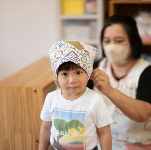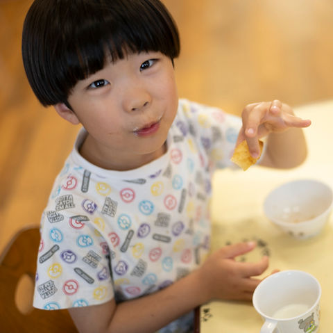 愛着を形成するための1つとして、0,1歳児は先生とゆったりとした時間を持つことを大切にし、食事も先生1人に対し、1~3人でいただきます。